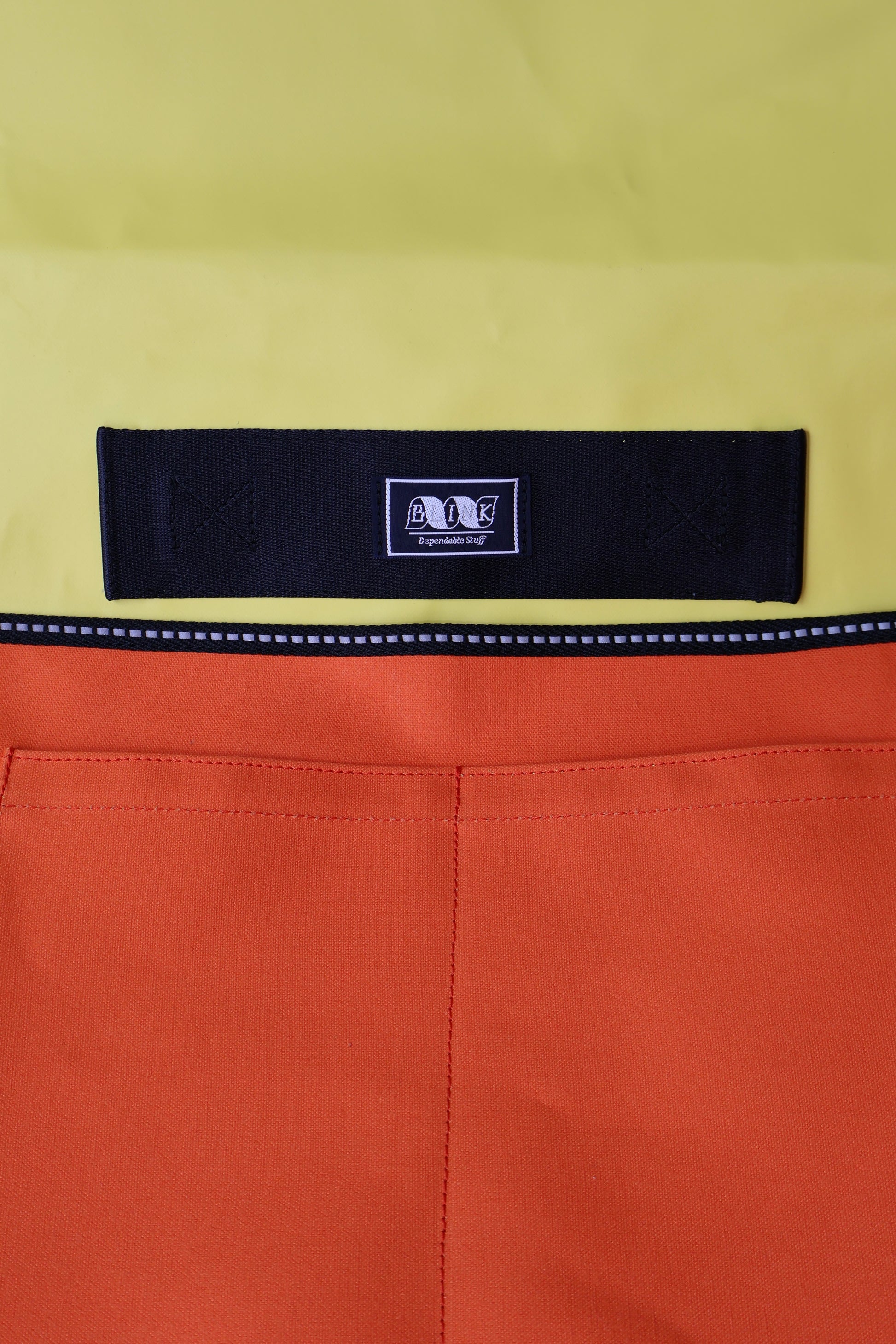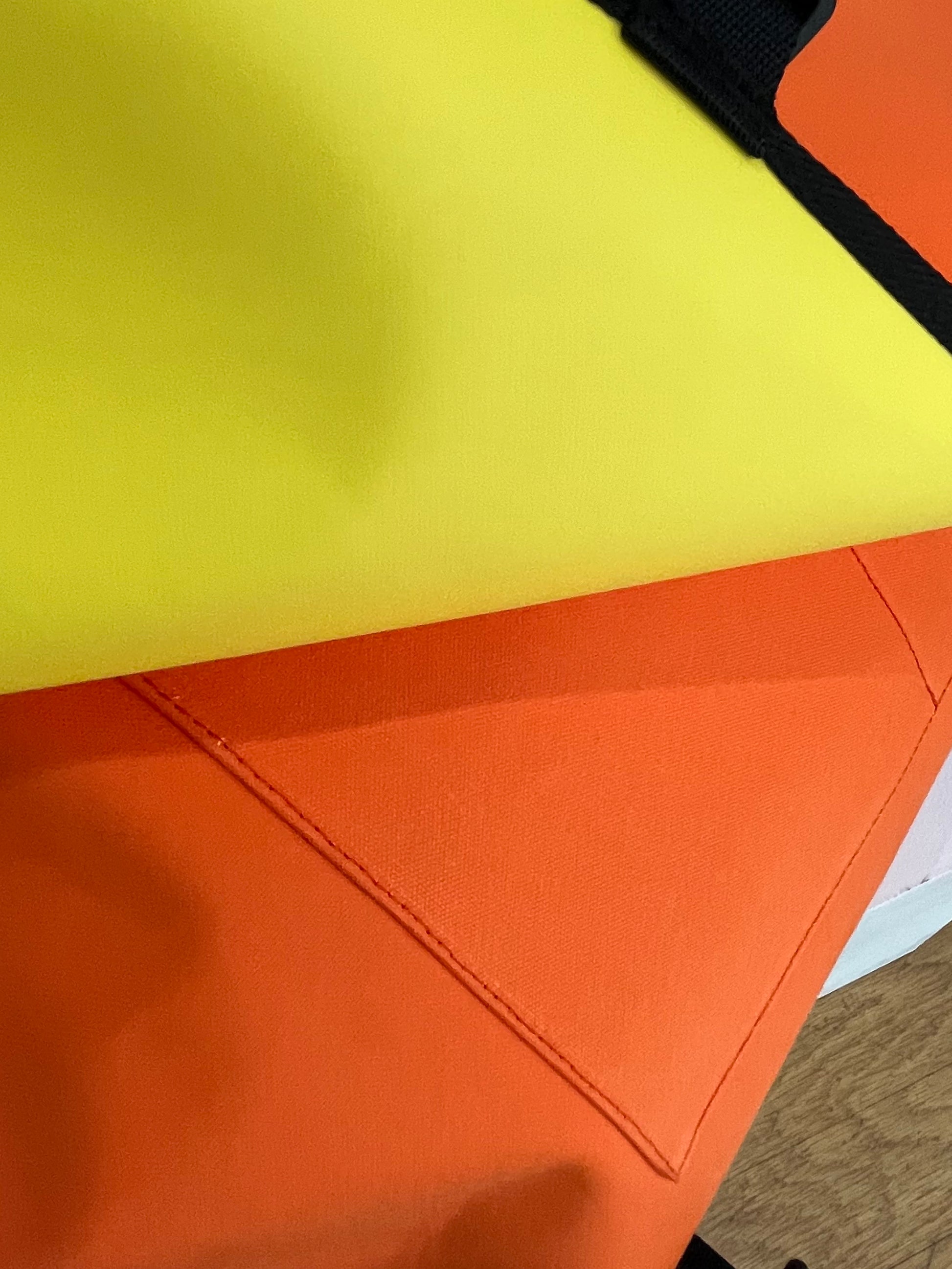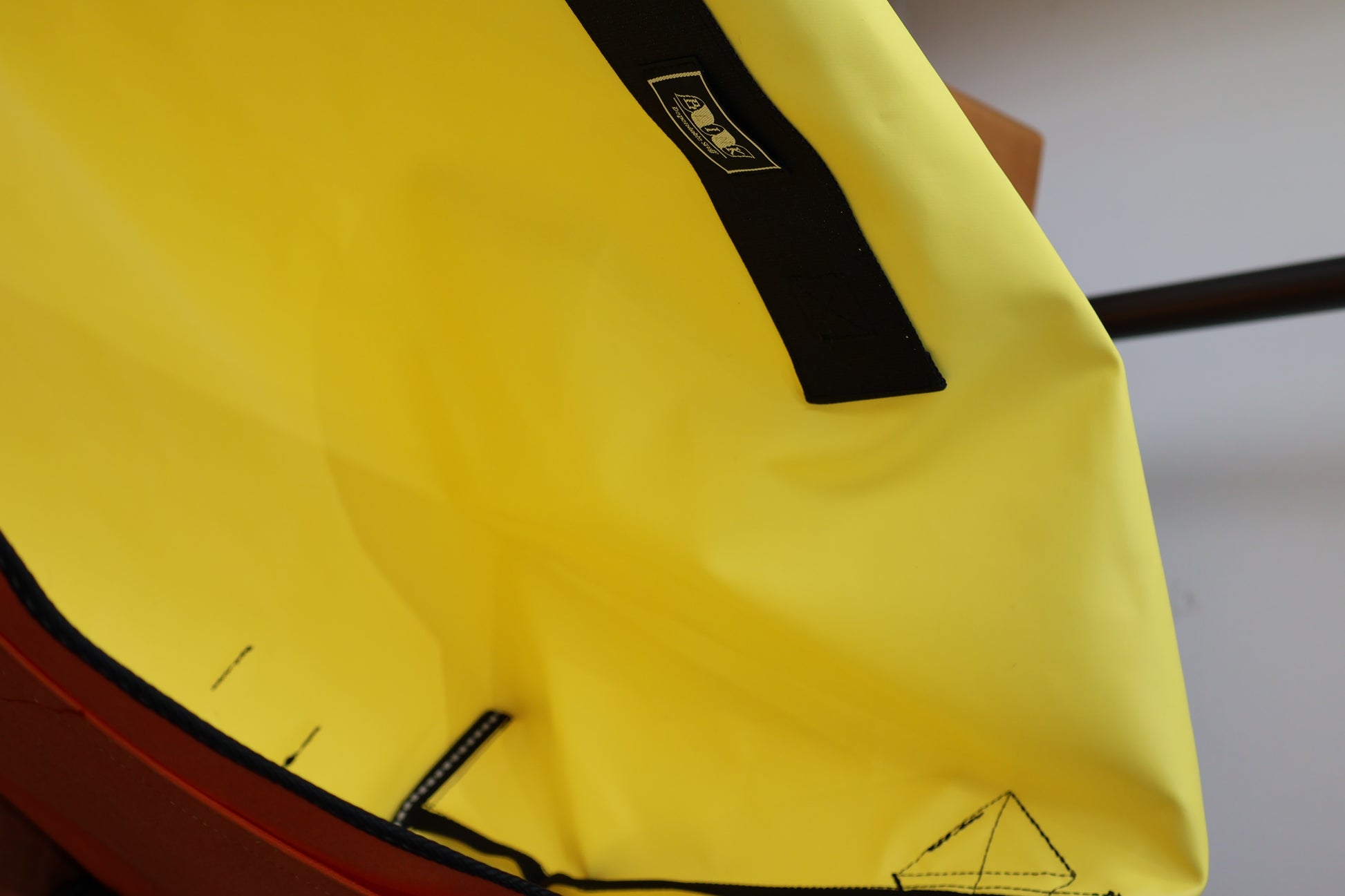 フラップ縁はリフレクターライン入りのテープでパイピングのアクセント。
