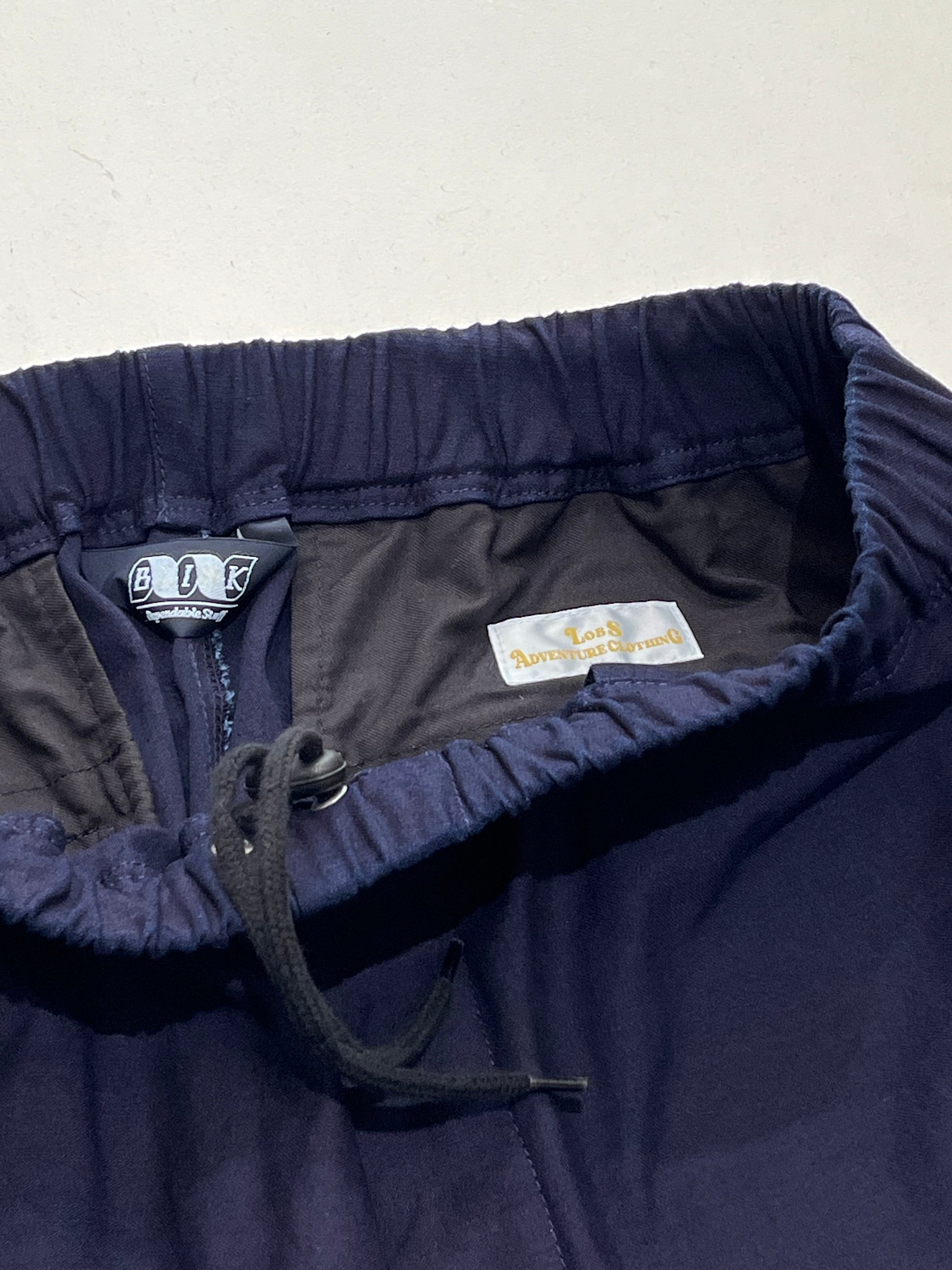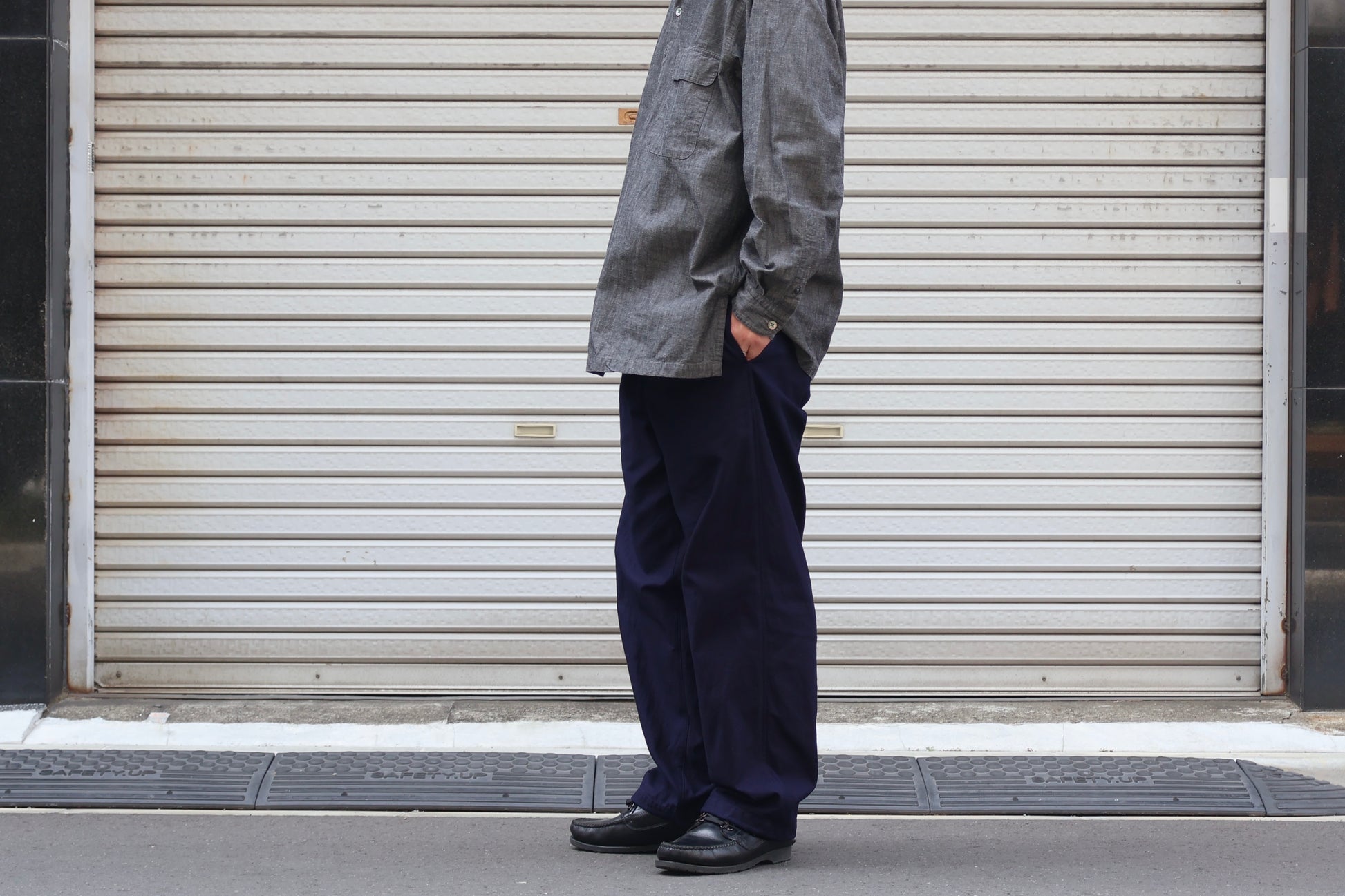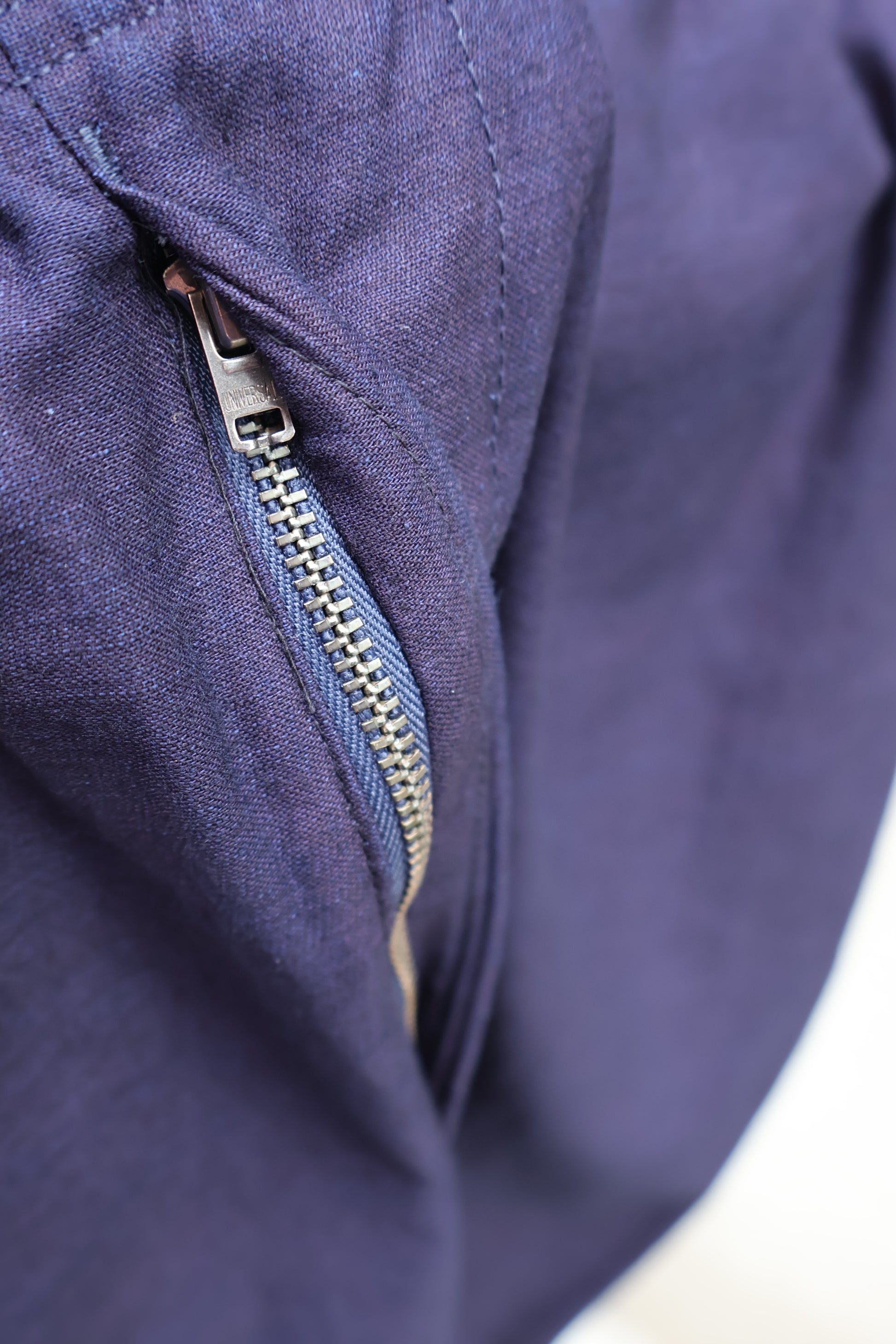 BLINK定番のEASY TROUSERSをベースに、インディゴ染めのリバースサテンにて作成。
