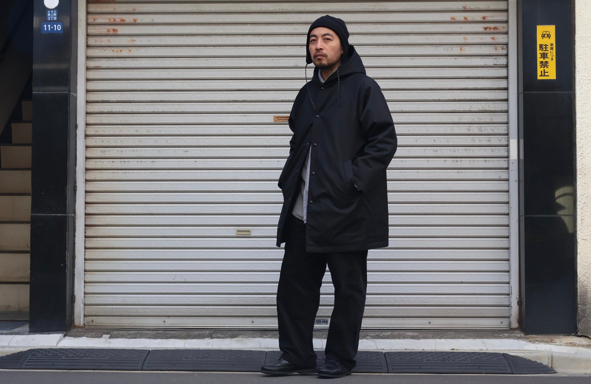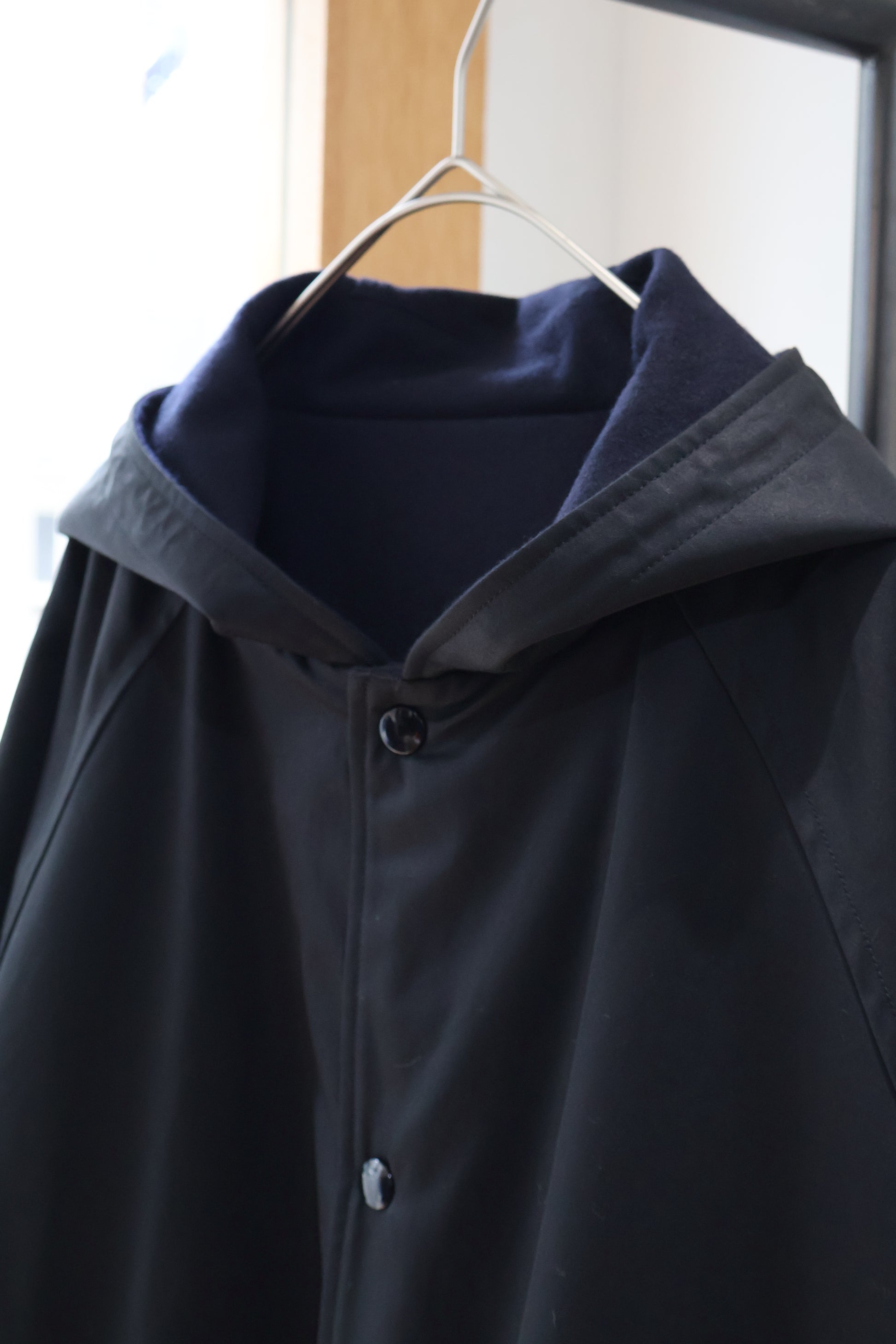 両面で着用可能な、ハーフ丈コート。