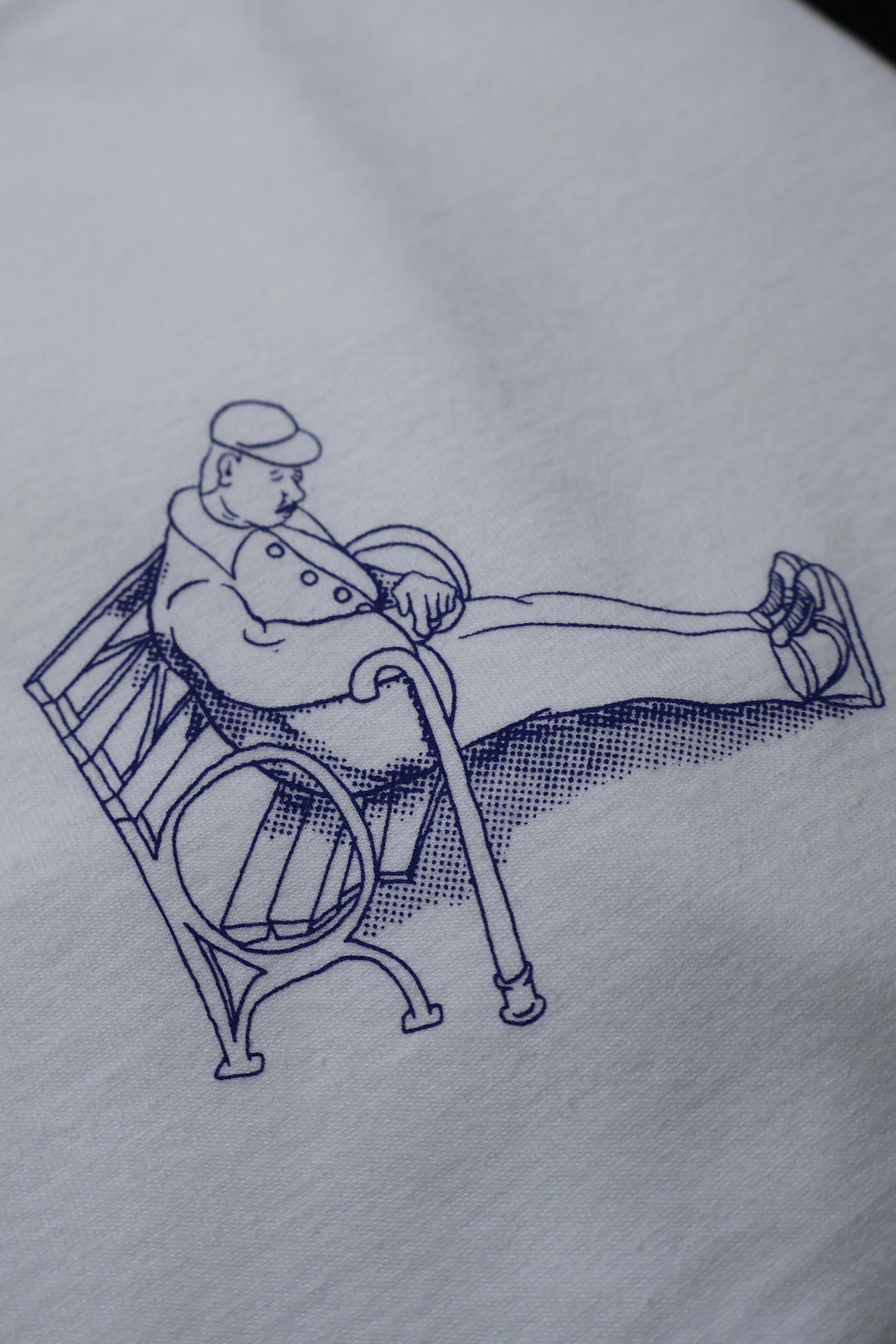 NY・Allen St,の遊歩道にあるベンチでよく見かけた、お散歩中にベンチで休憩してたら、天気が良くてウトウトしちゃったおじさんをモチーフにして描き下ろし。
