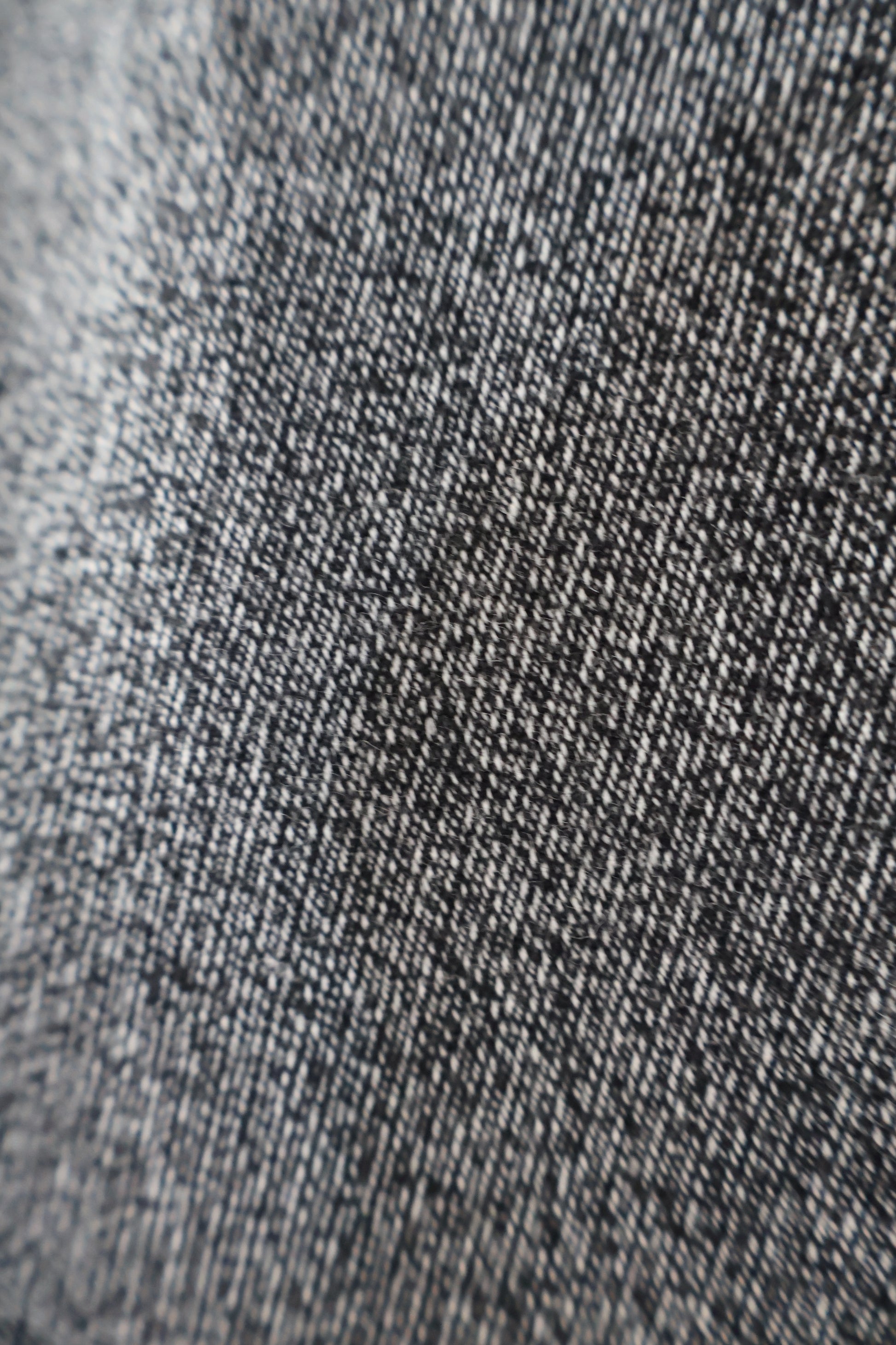 超高密度に織り上げた生機をニドム加工で一気にエイジングさせており、 生地に角が無く、繊細な毛羽が発現している事により、表面を撫でると非常に柔らかく味わい深い風合いに育っております。
