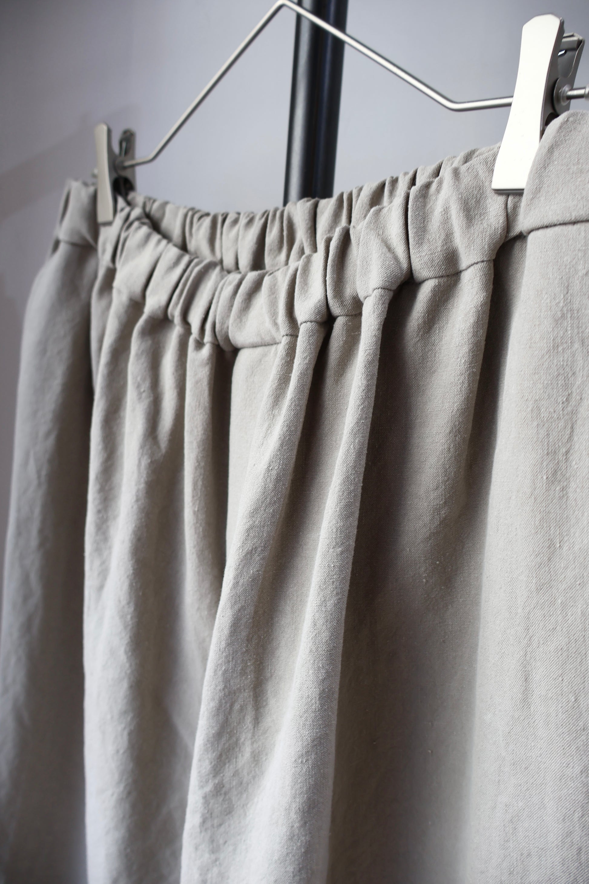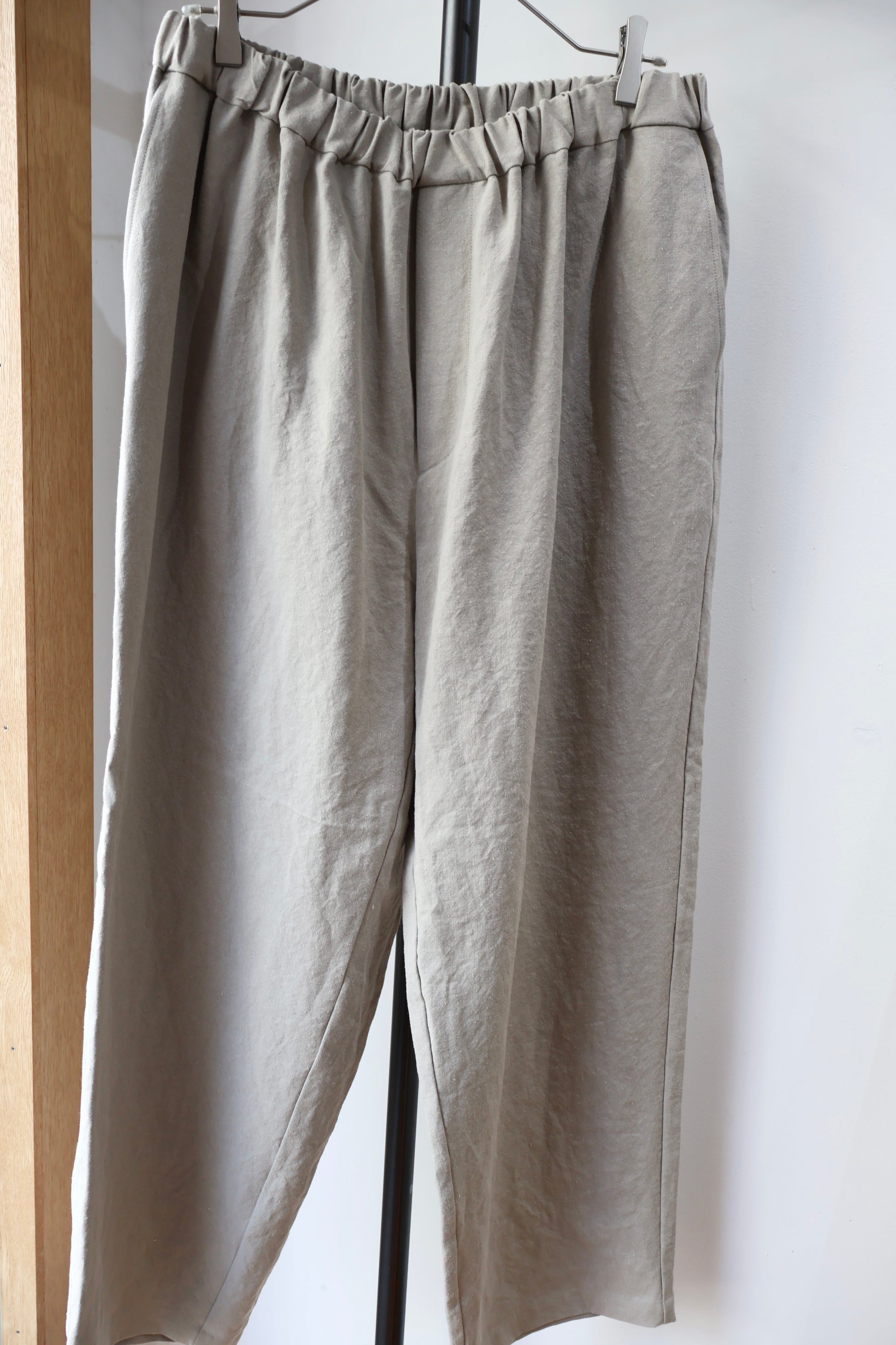 麻素材特有の横筋が線の様に目立つ場合が御座います。B品では御座いません。